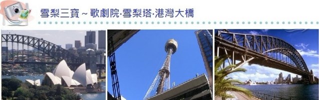 《悉尼 Sydney》美丽迷人的海港,多彩多姿的的文化氛围,洁净的海滩,怡人的气候,使悉尼成为全世界最向往旅游的城市之一。 ★蓝山国家公园 Blue Mountains National Park世界自然遗产;蓝山国家公园为「大蓝山区域」内7个国家公园内最出名的一个,拥有广大的尤加利树林,空气中经常悬浮着大量由尤加利树所散发出的油脂微粒,经过阳光折射后,一片淡蓝氤氲引人入胜。 ★回音谷瞭望台 Echo Point此为观赏三姐妹岩的最佳地点,同时也可欣赏整片蓝山及「杰美逊峡谷」的壮观景致。 ★矿坑缆车 Scenic Railway此缆车为最早期开采煤矿所建造的特殊交通工具,下到深入300公尺﹑斜52度的谷底探奇,沿途山势壮丽,美不胜收。 ★健行步道河谷里筑有木板步道,可在雨林里享受芬多精的滋润,同时也有机会与400 多种的鸟类亲近。 ■今天别穿高跟鞋唷!漫步在芬多精的氛围中,享受身体与心灵的沉静。 |
